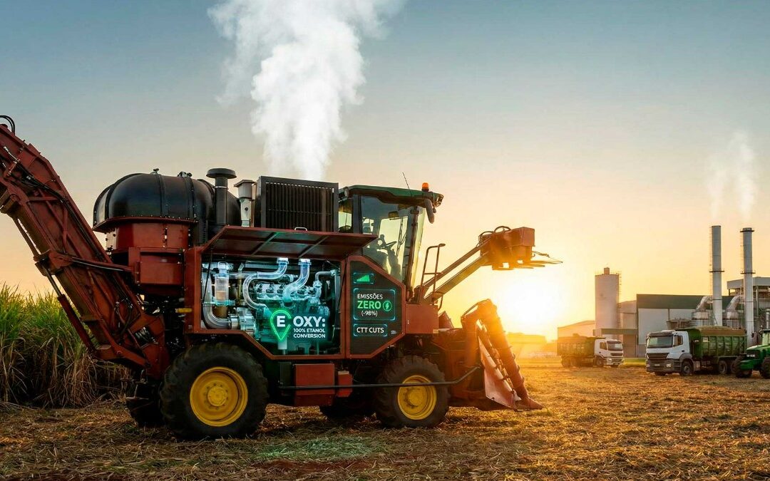 Startup E OXY apresenta solução para converter motores a diesel de colhedoras, caminhões e tratores para operar só com etanol hidratado, prometendo cortar custos e reduzir emissões em usinas canavieiras