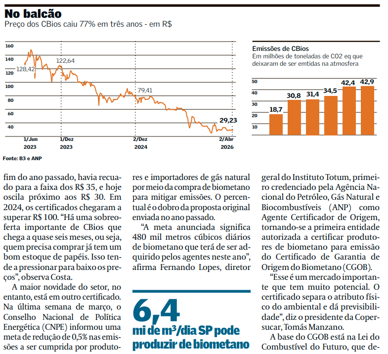 Imagem da reportagem relacionada ao RenovaBio e ao biometano: