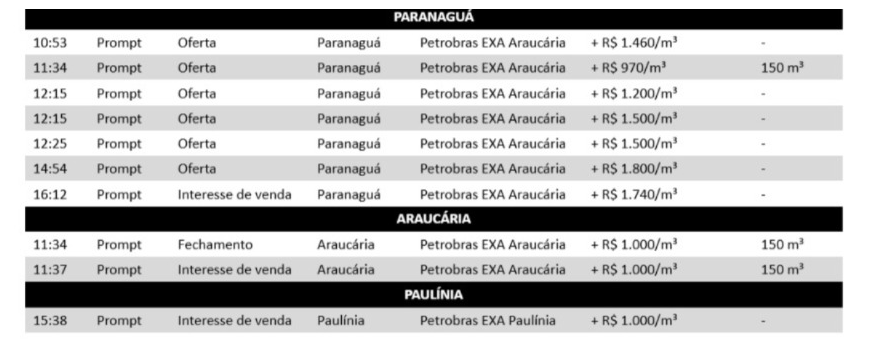 • A arbitragem fechada para importação de S10 elevou a liquidez do mercado spot em Paulínia e Araucária, com traders observando preços inferiores aos praticados nos portos à medida que alguns participantes com alto estoque buscam vender suas cotas Petrobras no interior. A Platts ouviu ofertas e fechamentos em PB + R$ 1.000/m³ nas duas praças. Nos portos, a disparada do petróleo afastou os compradores. O interesse de compra, quando existente, é reportado bem abaixo das ofertas. Em Santos, compradores estavam dispostos a pagar até PB + R$ 800/m³, mas as ofertas iam de PB + R$ 1.200/m³ a PB + R$ 1.800/m³. Os custos de reposição também seguem em alta com a continuidade da guerra no Oriente Médio.
